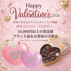 期間:2月1日〜2月28日迄 期間中 貴金属、ブランド品10,000円以上お買取最大20%🆙 ⚠️ローブランド、インゴットなどは対象外。 ⭐️更に先着50組にGODIVAセレクション アソートメントをプレゼント🎁💕 期間中は大変混雑が予想されますので LINEまたはお電話でお問い合わせをお願いいたします🙇