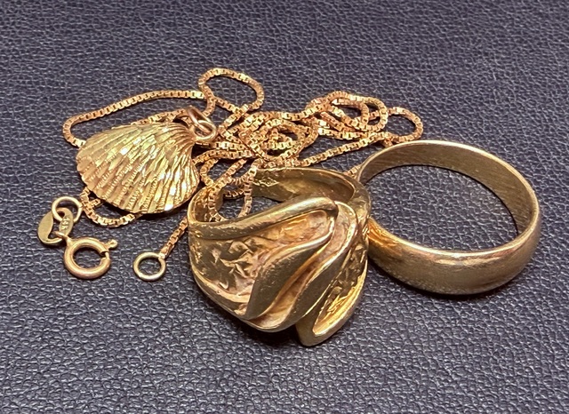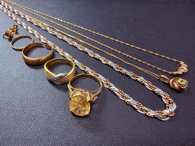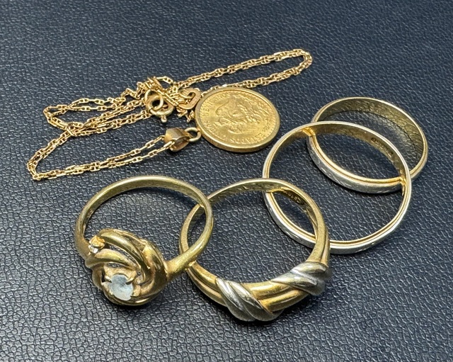 K18/K21.6コイントップネックレスやK18リングなど貴金属を高価買取させて頂きました。