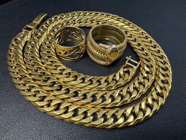 とても重厚なK18喜平ネックレスやK18リングを高価買取させて頂きました。