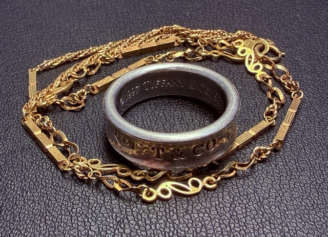 K18ネックレスとTIFFANY ナローリング 925を高価買取させて頂きました。