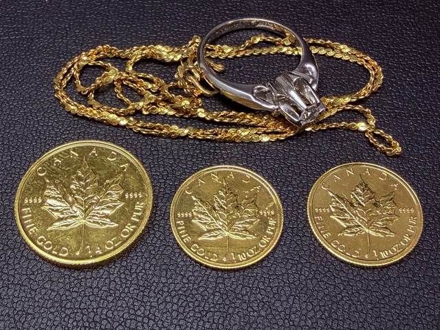 K24メイプルリーフやK22ネックレス、pt900/Dリングなどを高価買取させて頂きました。