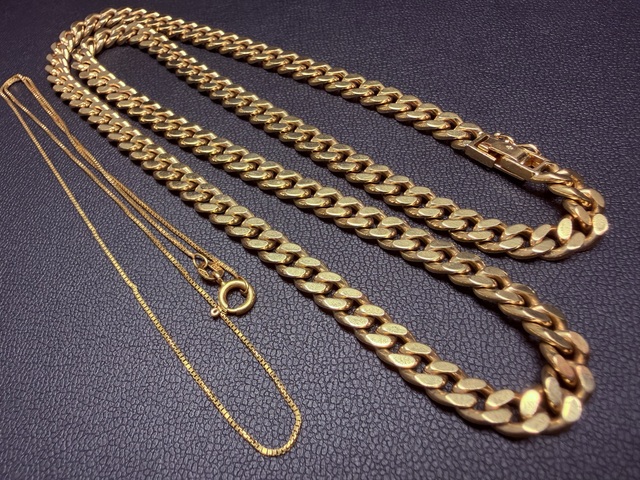 重厚なK18ネックレスを高価買取させて頂きました。