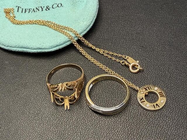 TIFFANY アトラスピアスドサークル750ネックレス、K18/Dリング、K18リングを高価買取させて頂きました。