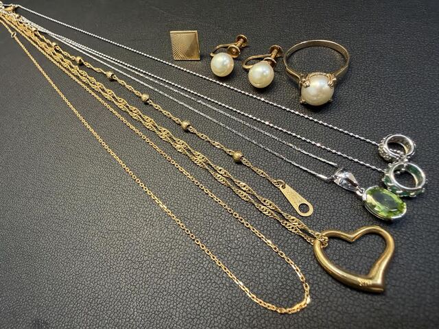 K18ネックレスやK18/パールリング、ピアスなどを高価買取させて頂きました。