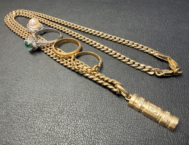 K18リング、pt900/E/MDリングやK10ネックレスなどを高価買取させて頂きました。