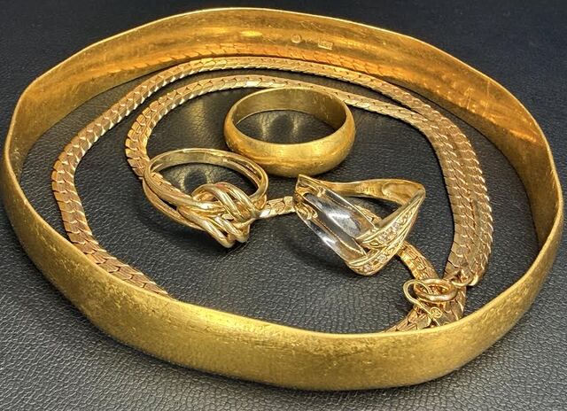 とても重厚なK24バングルやK24リング、その他たくさんの貴金属を高価買取させて頂きました。