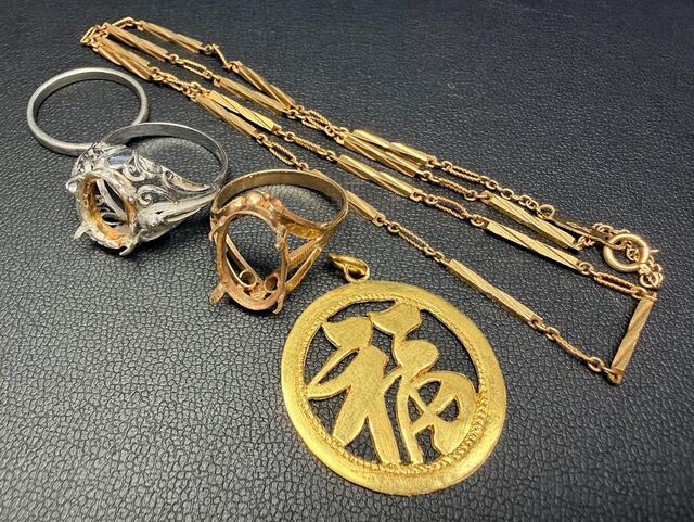 縁起の良い純金製"福”トップをはじめK18ネックレスやリングを高価買取させて頂きました。