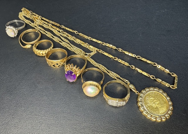 K24マン島キャットコイン付きK18ネックレスをはじめ多数のK18リングなどを高価買取させて頂きました。